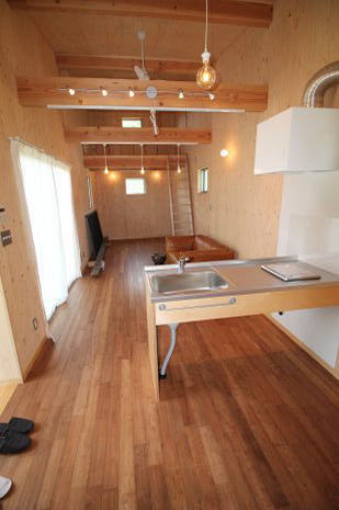 室内はワンルームでコンパクトながら、天井が高く開放感があり、 ロフトはベッドルームとしても十分に使うことができます。